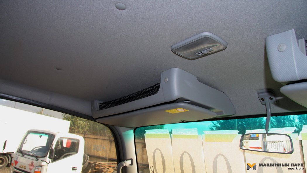 07. Светлая обивка добавляет объема кабине, но взамен потребует периодической чистки. Два кармана с сеткой пригодятся для хранения документов. Но одинокого плафона маловато для хорошего освещения, особенно в наших северных широтах.