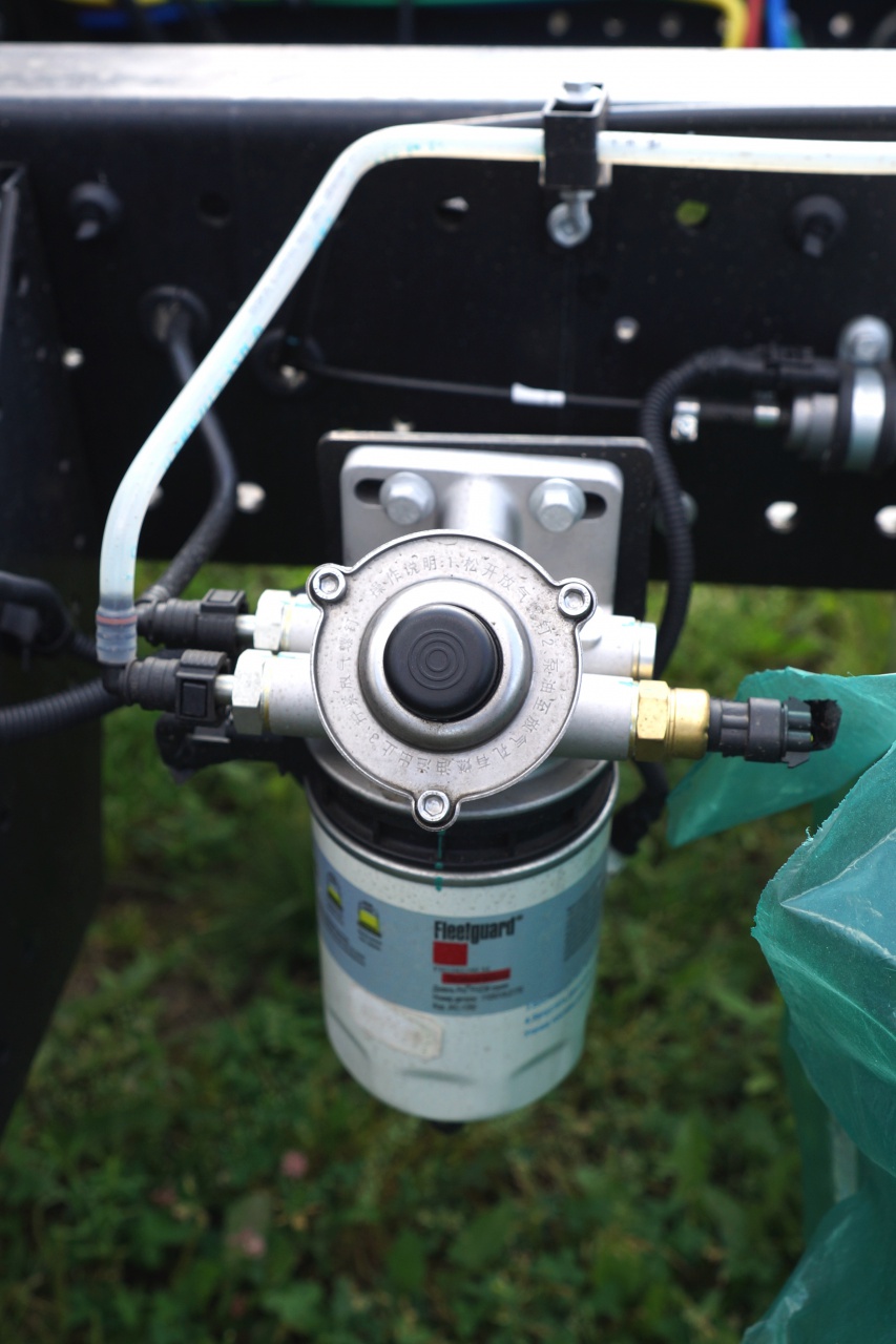 Машина серьезно подготовлена к российским холодам и качеству топлива: пол кабины утеплен, резиновые уплотнители, шланги и трубки — морозоустойчивые, внешний топливный влагоотделитель — с подогревом, подогреваемая «обратка» в бак, электрический тэн в блоке мотора на 220-вольтовую розетку. Топливный бак, правда, только 210 литров, но со следующего года обещают алюминиевый 280-литровый — уже лучше. Из рассказов представителя компании — машины заводятся в любой мороз даже без предпусковых обогревателей.