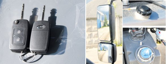 Итак, заводим двигатель. При включении зажигания приборная панель подмигивает разноцветными лампочками, а на расположенном посередине дисплее отображается уровень жидкости AdBlue, предупреждения о непристёгнутом ремне безопасности, давлении в тормозной системе и информация о пробеге. К слову, ключ зажигания отпирает и запирает всё на грузовике.