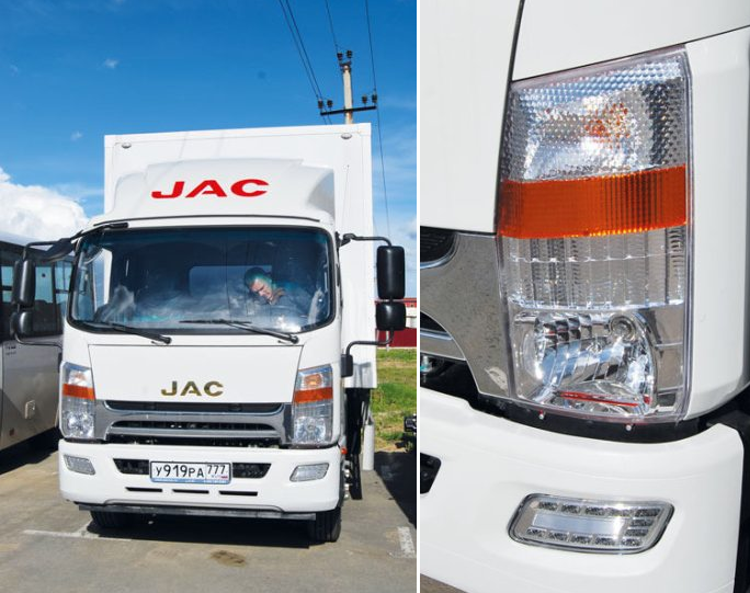 На первый взгляд, любая из трёх представленных в России моделей JAC N-серии похожа на японские. Плавные линии в дизайне, внутри — аккуратный пластик (заметим — абсолютно невонючий). Окраска очень аккуратная, сразу видно применение роботизированной линии. На кабине три слоя лака для защиты от коррозии.