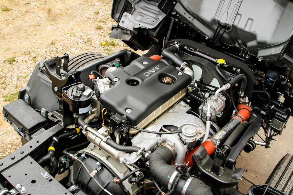 Теперь про автомобили: силовые агрегаты — старые, правда в современном маркетинге это называется «проверенные временем». На маленький JAC N56 ставится мотор собственного производства JAC HFC4D. Этот мотор они выпускали для Isuzu, под маркой Trooper 2.8 , теперь довели до нормы Евро-5. На грузовики N75 и N120 ставится Cummins 3.8 различной мощности.